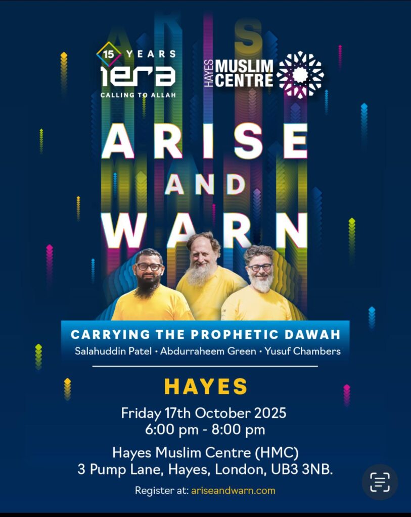 Hayes Muslim Centre is organising an event Arise and Warn “CARRING THE PROPHETIC DAWAH” in partnership with “iERA Share Islam”.
