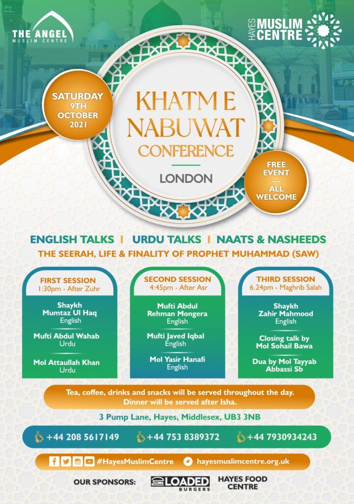 Hayes Muslim centre is organising “Khatam e Nabuwat” conference. Islamic renown scholars will be delivering their talk on The Seerah (Life & Finality of Prophet Muhammad-SAW).